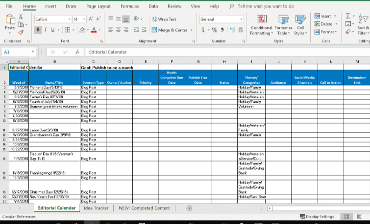 Once you have the basic parts of your editorial calendar, you can expand on them as needed. The idea is to create the best calendar for you, one that is fluid so you can grow it as your content needs and projects grow. Need inspiration? You can click here to see some examples.