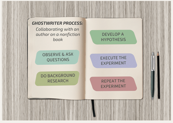 Although ghostwriting might sound spooky, my process for working with an author on a nonfiction book is anything but! In fact, teaming up with an author to help ghostwrite their nonfiction book is kind of like being a literary scientist executing the scientific method: It involves a methodical approach that’s both thorough and closely pertains to the background information source. But don’t worry, you won’t need a lab coat to use my process—check it out!