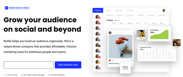 Buffer is a handy program that allows you to distribute content across various channels with scheduled publishing at recommended times for optimum engagement and awareness. Moreover, the Buffer AI Assistant can generate content ideas for you and repurpose existing content repeatedly. At the same time, its IA counterpart creates automated reports to showcase your work and identify your success.