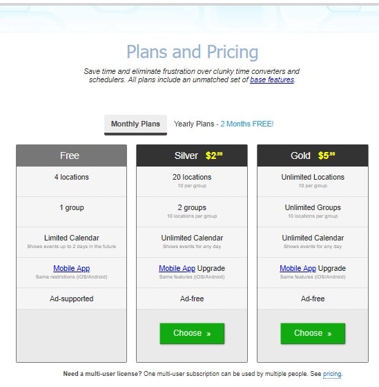 But if your needs expand beyond just four locations or time zones, World Time Buddy offers a paid service for as many locations as you need. And there are even options for multi-user subscriptions.