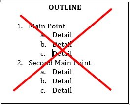 - Steer clear of outlines for written content. If you’re like most auditory learners, you’d rather run a mile through Death Valley than sit down and read a bullet-pointed outline of your next whitepaper, web page, or annual report. To you, planning and organizing happens best during a face-to-face meeting, phone call, or Skype session. Set up calls with your writing team. Verbally confirm that you’re on the same page, about what you’ve seen so far, and give them the green light to start writing a draft.
