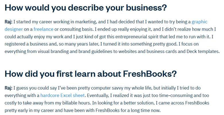 Write your case study from the perspective of the customer to make it more personal and engaging. One good way to do this is with an interview or Q&A format. Your reader hears directly from your customer about their success with your product, as if theyโ€™re having a conversation with a peer.