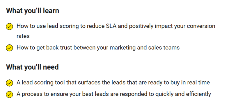 • A bullet-point โ€œwhat youโ€™ll learnโ€ like this one.