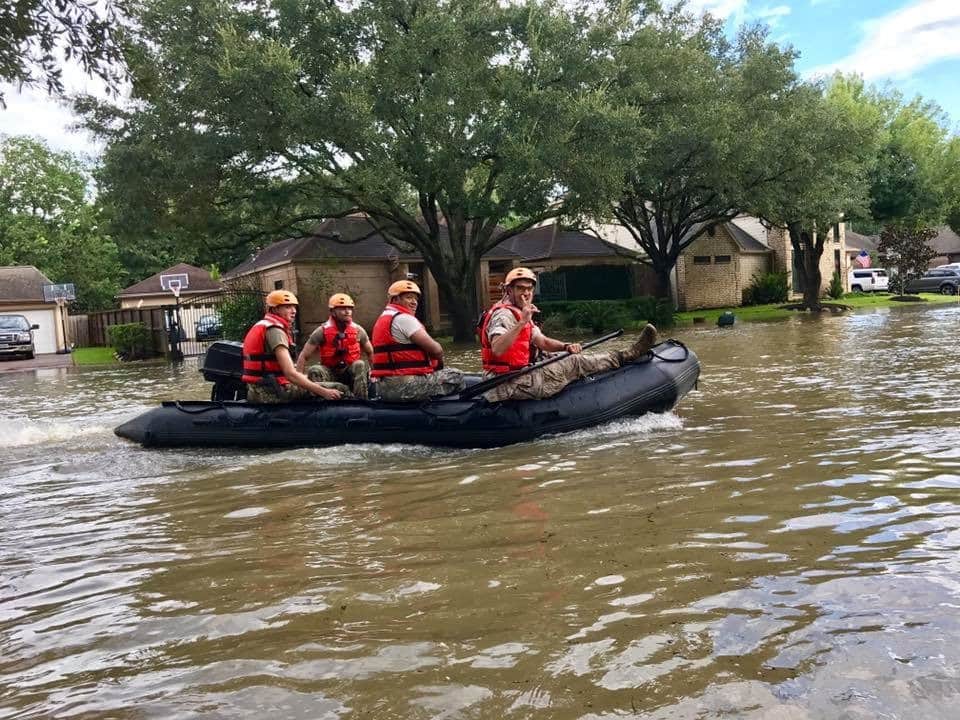 A few hours later, she and Cody were guiding their little boat through the streets of Houston, on the lookout for anyone stranded by the hurricane.