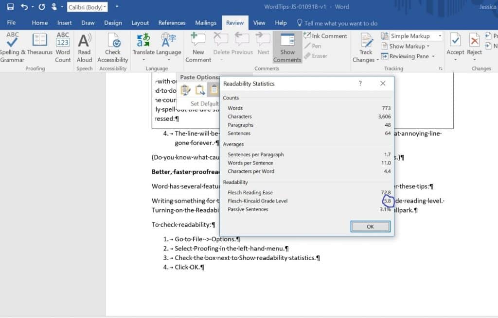 Word Tip of the Week: Using the Readability Feature