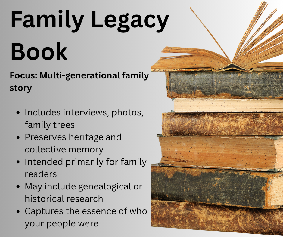 You may not know exactly what kind of book you want to write at the beginning—and that’s okay. Most people start with a few vivid memories, a gut feeling that this matters, and a desire to leave something meaningful behind.